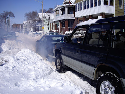 前面一邊鏟雪後面一邊頂,還有好多路人都跑來幫忙,John瘋狂的踩油門,他女朋友一直說你這樣會把車子搞壞,他還是不顧一切的踩,然後就冒了一堆煙,